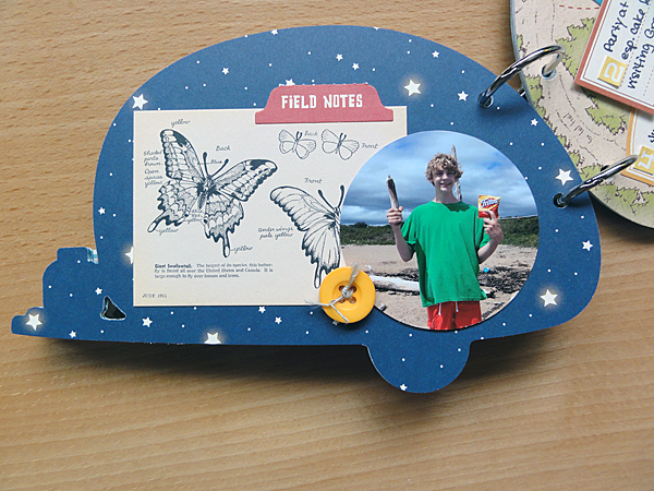 I used lots of girly products on this page, since it was about nature. I think the wood gran and print paper as the background subdue it enough for a boys' page.